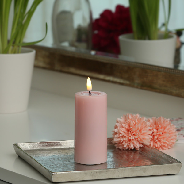 LED Stumpenkerze MIA - Echtwachs - realistische 3D Flamme - H: 10cm - D: 5cm - Batteriebetrieb - rosa