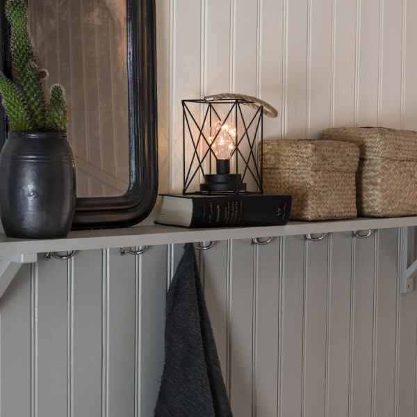 Die schwarze LED Laterne ist die ideale Dekoration zum Hinstellen oder Aufhängen. Die bernsteinfarbenen LED an der Drahtlichterkette im Inneren der Glühbirne verbreiten ein schönes und gemütliches Licht. Die eckige Laterne im Gitterlook ist genial als Dekoration von Tischen, Beistelltischen oder Kommoden. Mit dem Juteseil als Henkel, kannst Du den Hingucker aber auch hängend sehr schön zur Geltung bringen.