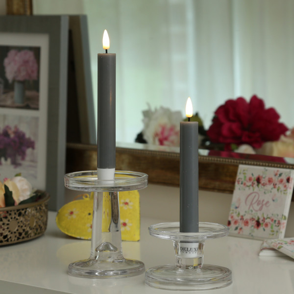 LED Stabkerzen MIA - Echtwachs - realistische 3D Flamme - H: 15cm - Batteriebetrieb - grau - 2 St