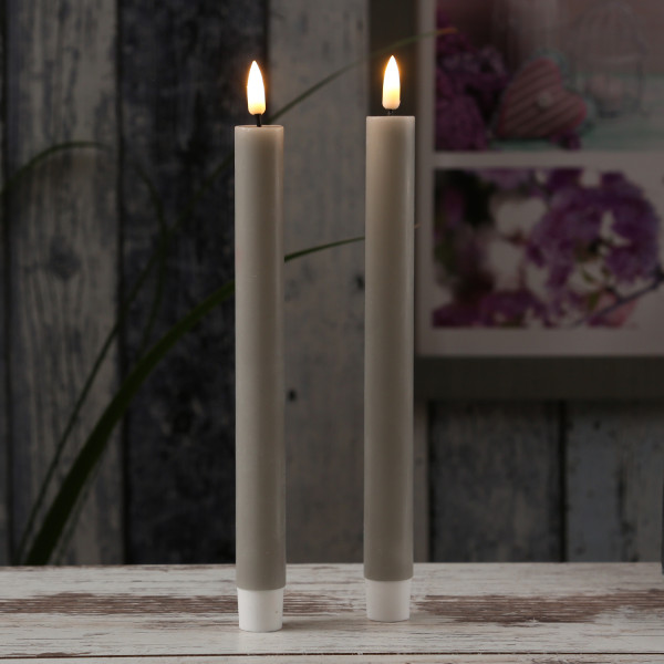 LED Stabkerzen MIA - Echtwachs - realistische 3D Flamme - H: 24cm - Batteriebetrieb - sand/taupe - 2 Stk