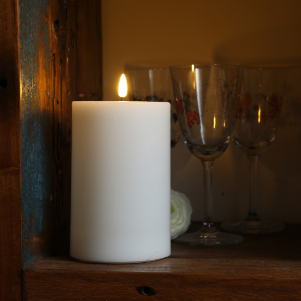 LED Stumpenkerze MIA - Echtwachs - realistische 3D Flamme - H: 15cm D: 10cm - Batteriebetrieb - weiß