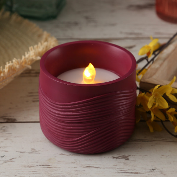 LED Solar Windlicht - Wellenmuster - flackernd - Lichtsensor - H: 8cm - für Außen - beerenrot